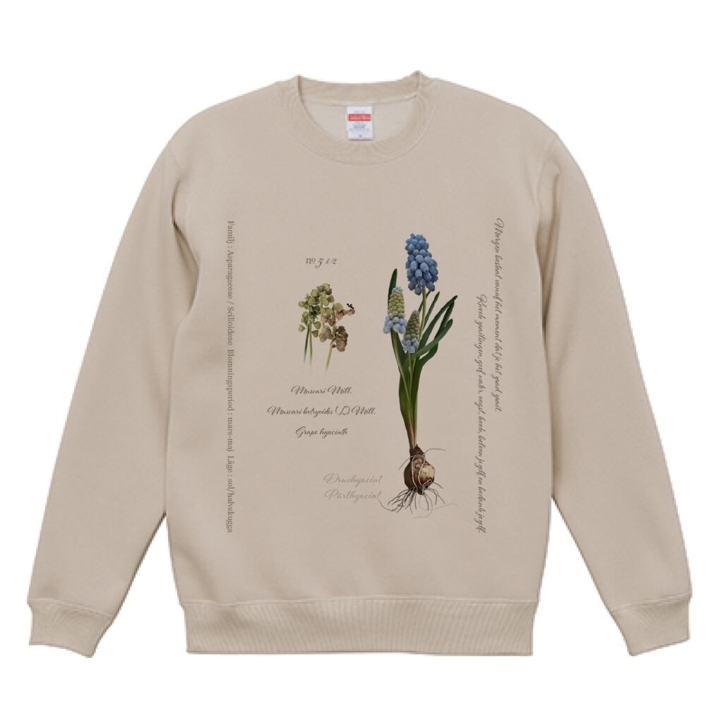 【送料無料 / 裏起毛コットン100% 10oz スウェット】 春のような着心地のガーデニングスウェット / ムスカリ